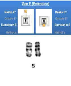 Genau das gleiche passiert natürlich auch mit dem zweiten heterozygoten Gen in unserem Beispiel, dem Maskengen E: