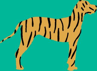 Alle Doggen sind ganz offensichtlich homozygot für das Allel Gelb ay, egal ob sie ein gelbes, gestromtes schwarzes, blaues oder ein schwarzgrau bzw. schwarzweiß geflecktes Fell haben. Warum erwähne ich dieses Gen dann überhaupt? Weil genaugenommen das Gelb der gelben Doggen vom Agouti-Gen stammt und nicht vom oben beschriebenen Gen „Dominant Black“: Das dort vorliegende Allel ky selber „produziert“ gar kein Gelb…es lässt einfach die gelbe Farbe des Allels ay auf dem Agouti-Gen „durchscheinen“, während die Allele für gestromt kbr und schwarz Kbl diese einfach „übermalen“. Bildlich gesprochen liegt also auf dem Agouti-Gen die (bei den Doggen stets gelbe) Grundierung, die je nach den auf dem Gen „Dominant Black“ vorhandenen Allelen mit einer andersfarbigen Lackierung überdeckt wird, oder aber sichtbar bleibt. Man könnte hier versucht sein zu sagen, dass die Allele des Gens „Dominant Black“ Kbl und kbr dominant sind über die Allele des Agouti-Gens. Die Idee ist richtig, aber es wird dafür ein Fachbegriff verwendet, um diese Situation von der Dominanz zwischen Allelen desselben Gens zu unterscheiden: Wenn ein Gen die Ausprägung des Phänotyps eines anderen Gens beeinflusst (in unserem Fall verhindern das schwarze und das gestromte Haarkleid von „Dominant Black“ stets die Ausprägung des gelben Haarkleid von „Agouti“), nennt man dieses Verhältnis eine Epistase, in unserem Fall ein dominante Epistase von „Dominant Black“ über „Agouti“. Wir werden ein weiteres, sehr bekanntes Beispiel einer Epistase im Gefleckten Farbschlag kennenlernen.