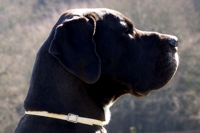 Eine schwarze Dogge mit einem „Merle“-Allel, aber ohne „Harlekin“-Allel ist ein Grautiger…