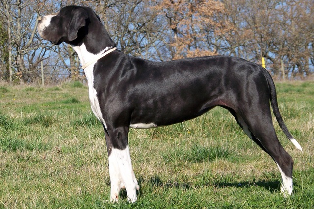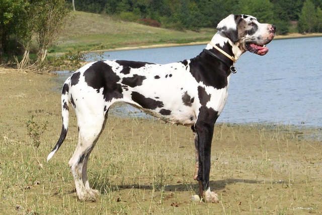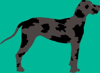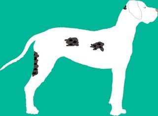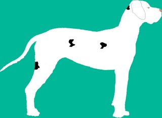 …ist sozusagen die Königsdisziplin der Doggenfarbgenetik…aber mit dem bisher Gelernten sollte auch das Verständnis des Zusammenwirkens der Gene und Allele bei den Gefleckten und den Grautigern kein größeres Problem mehr darstellen. Die Grundfarbe ist hier wie im blauen Farbschlag das für ein schwarzes Fell codierende Allel KBl des „Dominant Black“-Gens: